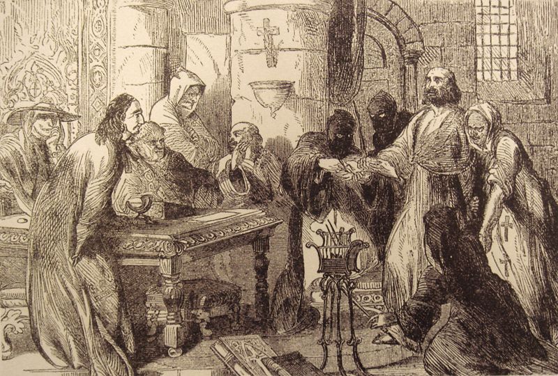 The Knights Templar were a monastic order formed around 1119 to protect pilgrims in the Holy Land in the aftermath of the first Crusades. Their mission quickly expanded to actively fighting the Saracens. The Templars became a popular order and received many charitable gifts. To manage their wealth, and finance their wars in the Holy Land, they gradually developing a banking network across Catholic Europe. Unfortunately, their great wealth could not redeem their military failures, and along with the other Crusaders and monastic knights the Templars were driven from the Holy Land by 1291. The greedy King of France, Philip IV, in debt to the Templars, coerced Pope Clement V into helping him destroy the Templars on the grounds of heresy. The order was dissolved in 1312. De Molay, who had confessed under torture, recanted his confession, and was officially executed for doing so. And that, more or less, was the end of the Templars in fact.